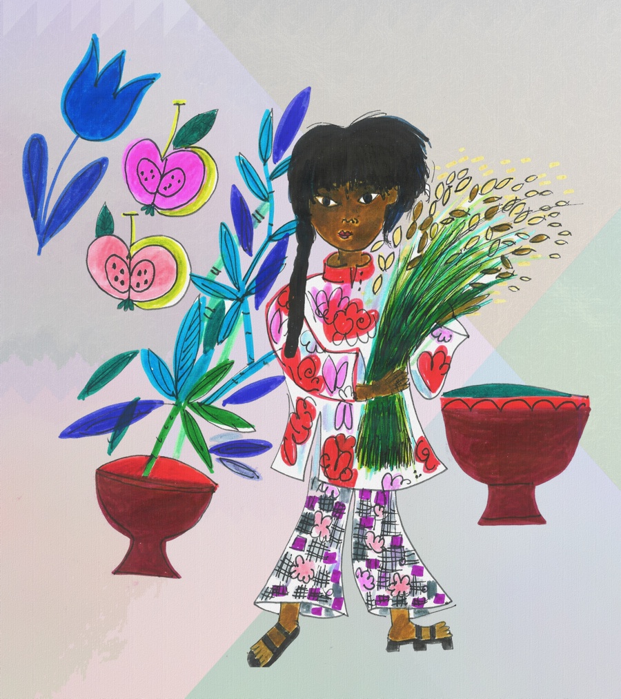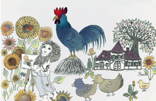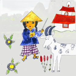 Tuschezeichnung , Farbstifte, Aquarellfarbe |