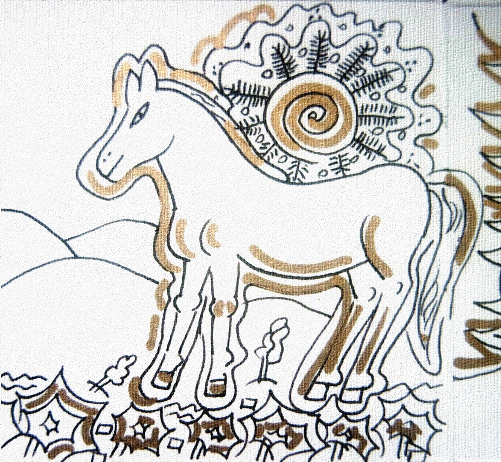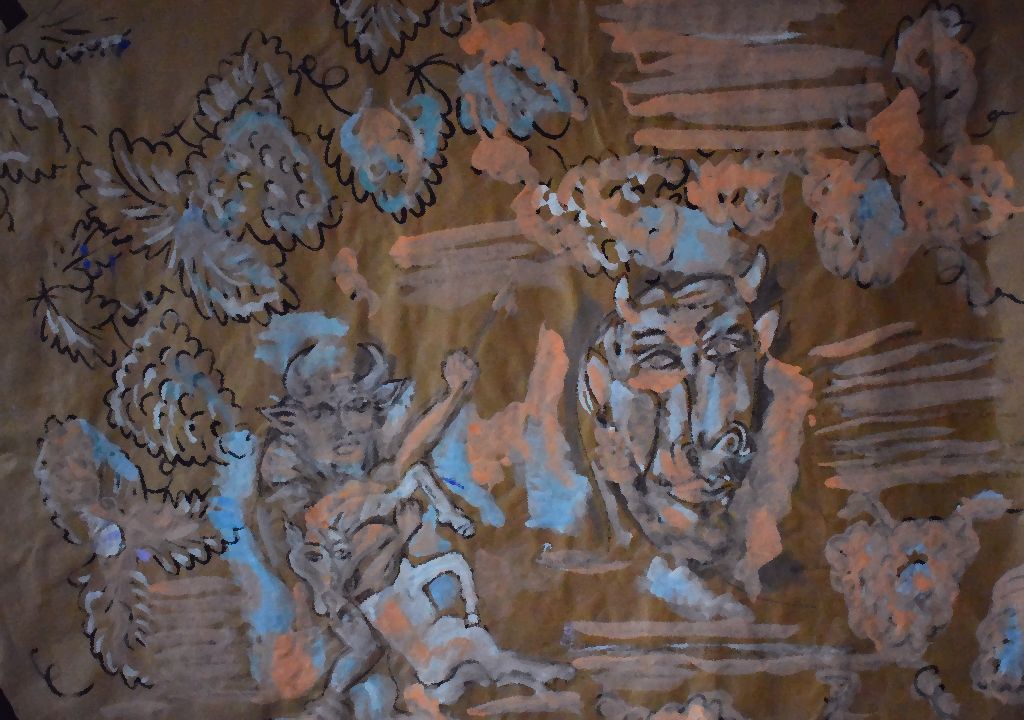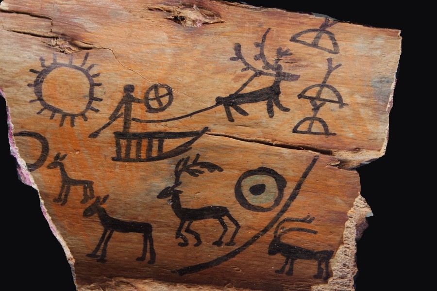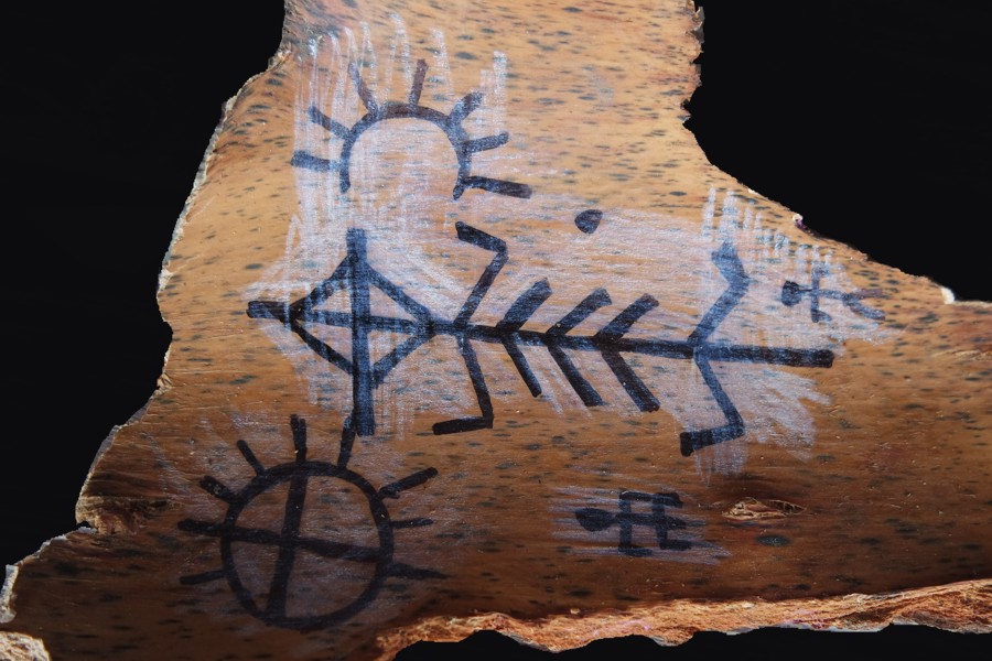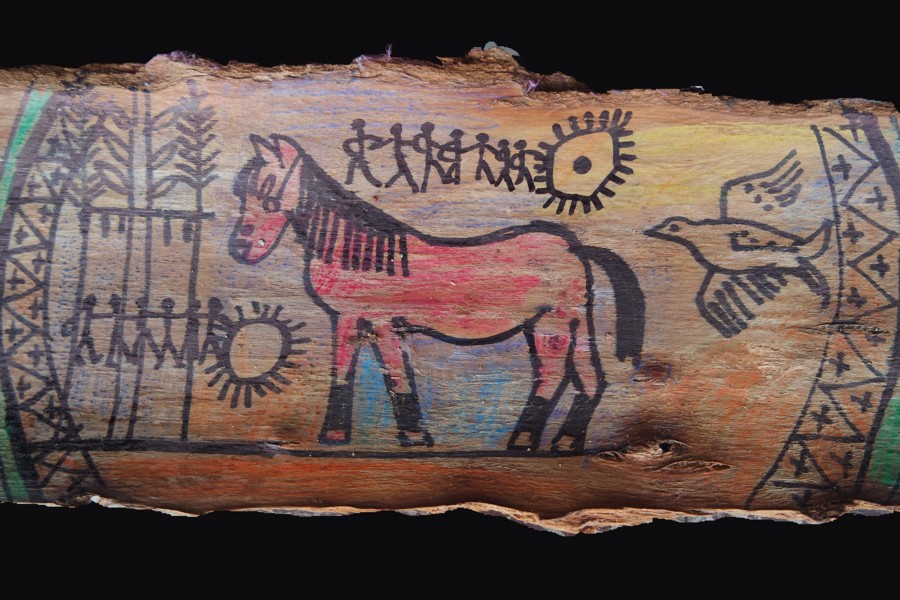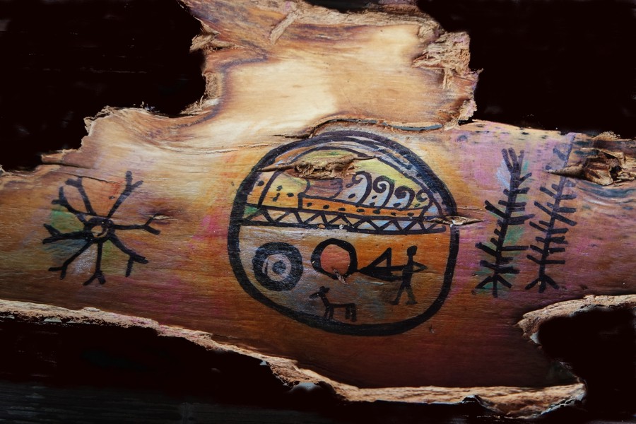Archaische Motive auf Baumrinde