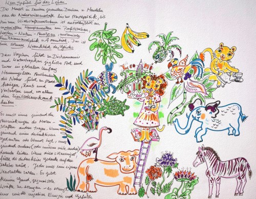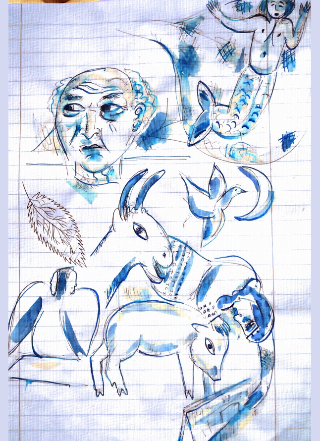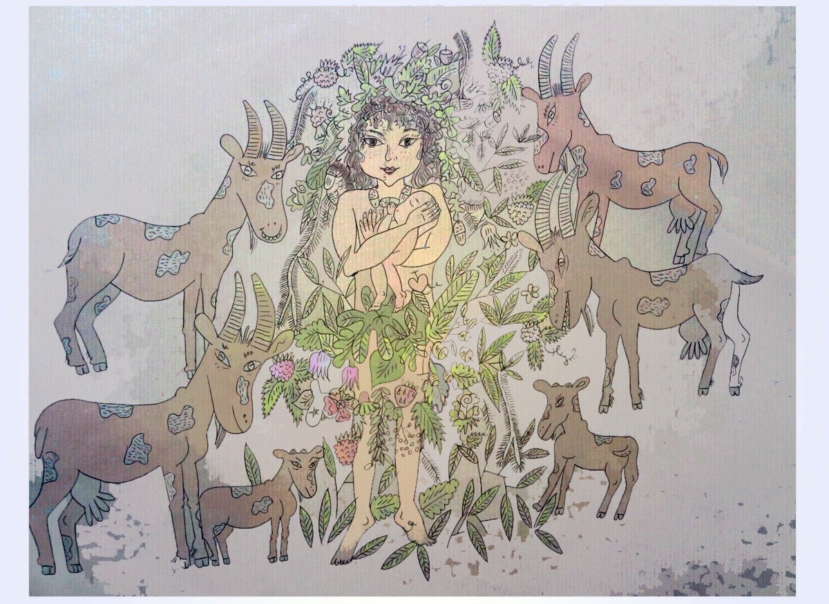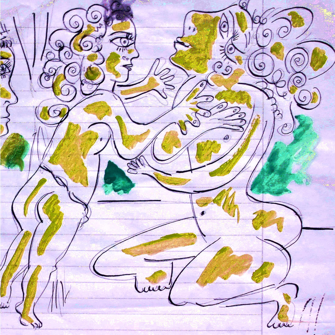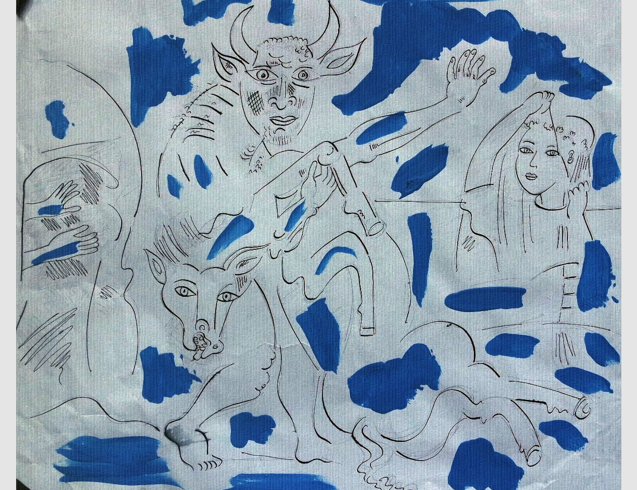 Archaische Motive auf Baumrinde