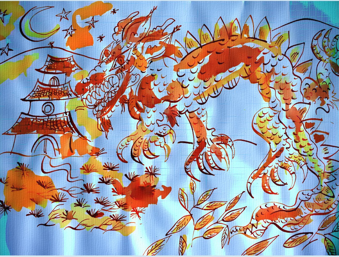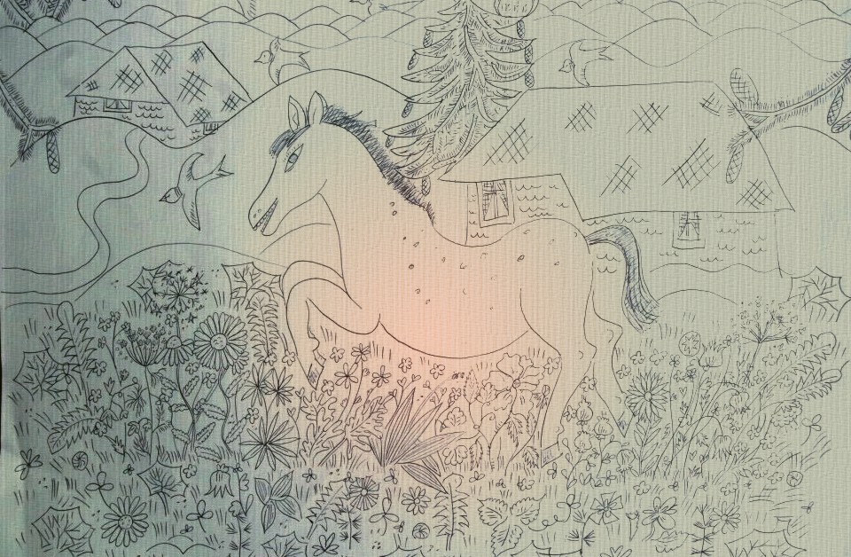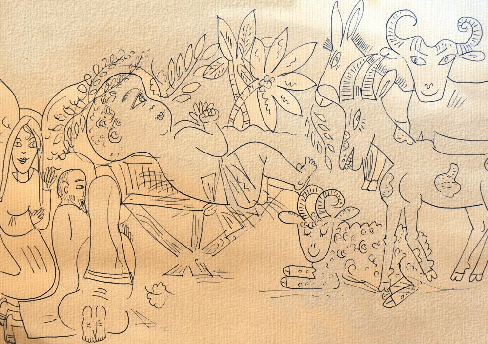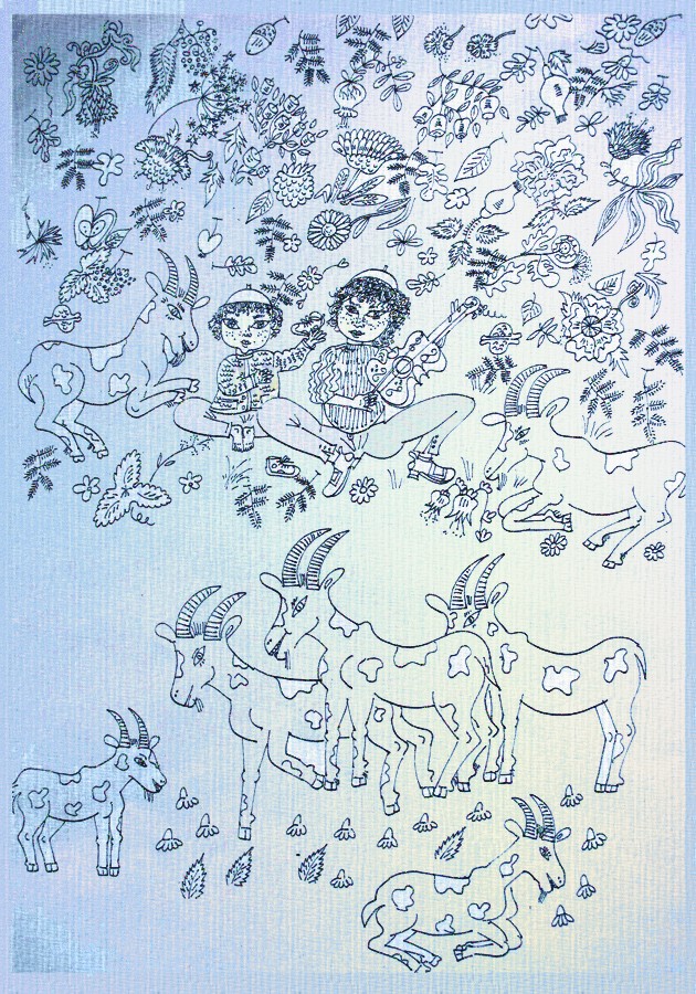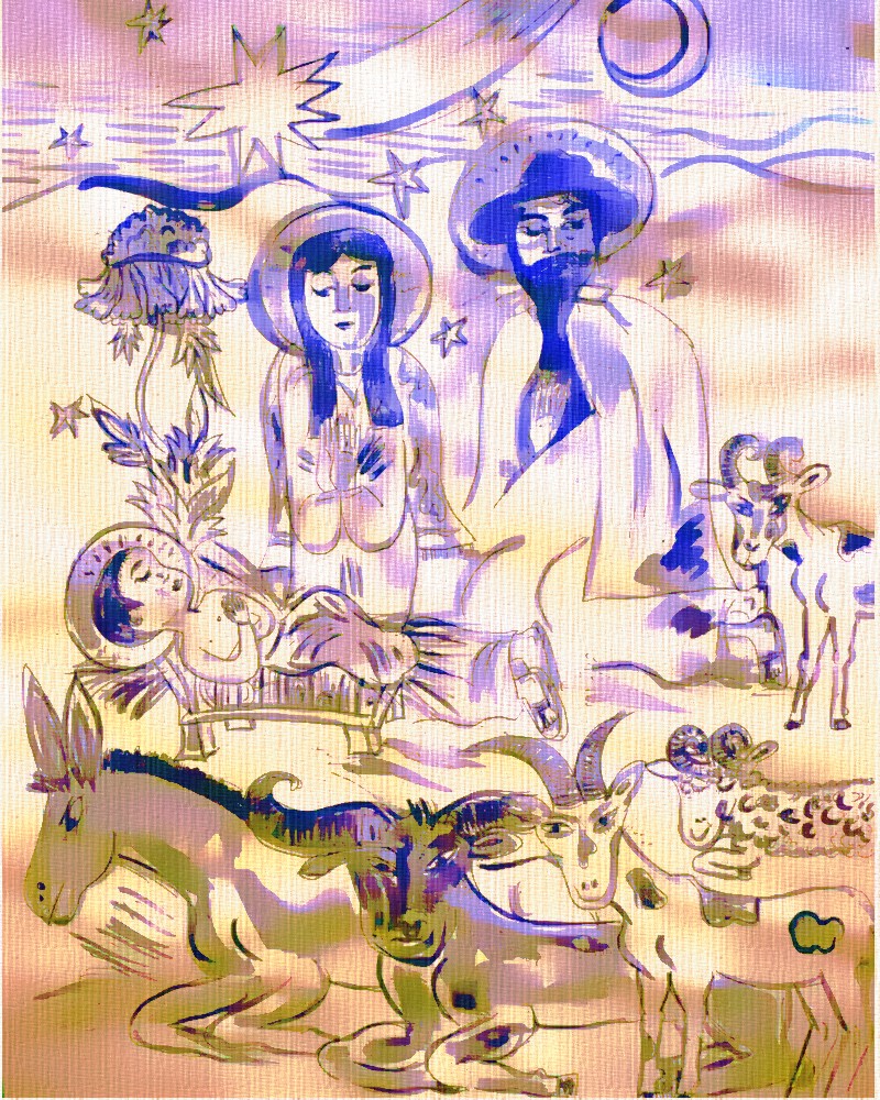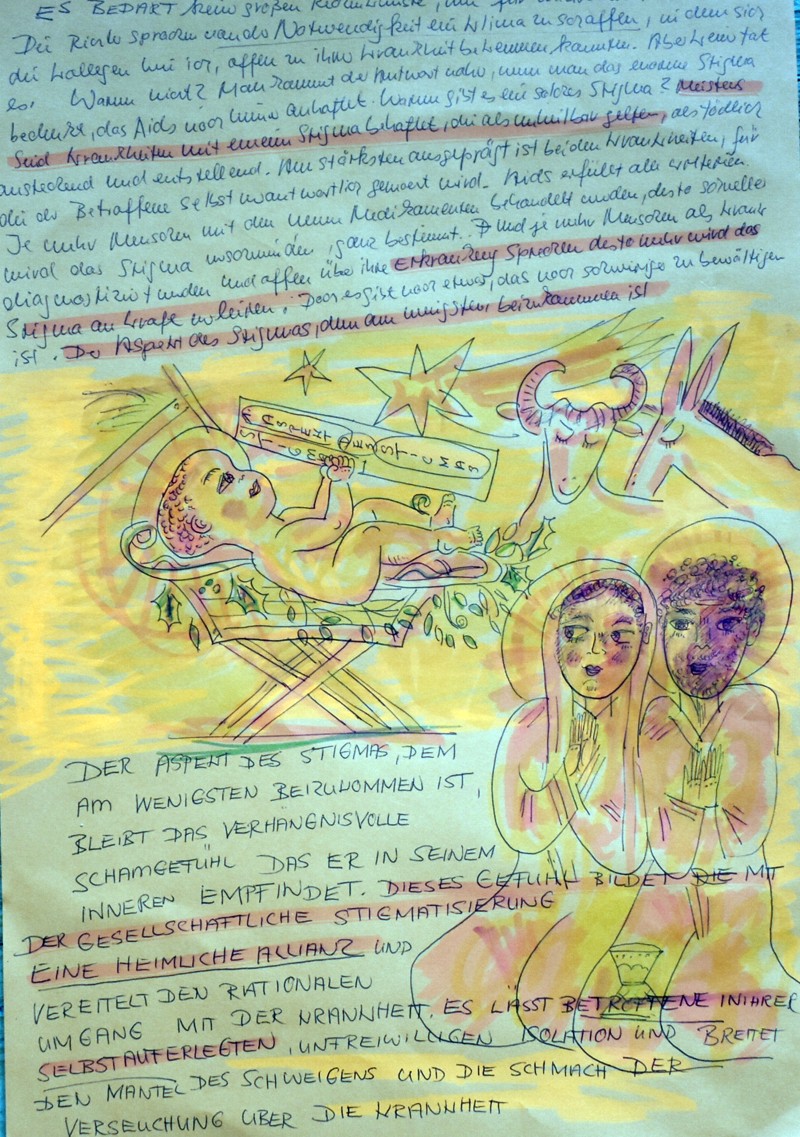 Archaische Motive auf Baumrinde
